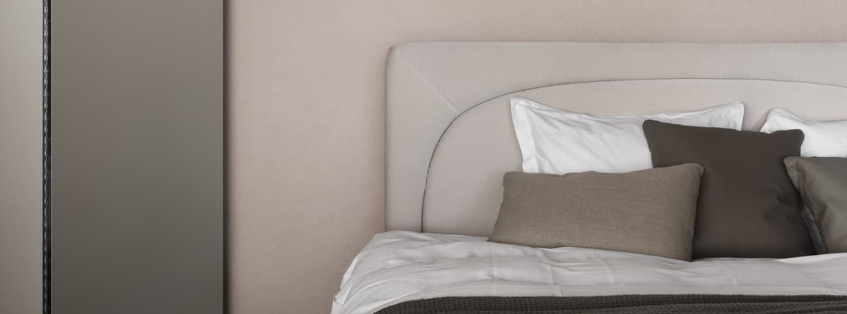 Eden لوح رأس منجد ليّن لسرير DUX بتصميم فريد يجمع بين البساطة والتفاصيل المميزة بشكل مقوّس.