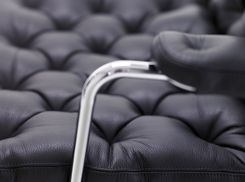 Karin is a classic elegant easy chair, neat with a frame in fine chrome and a deep stitched cushion.