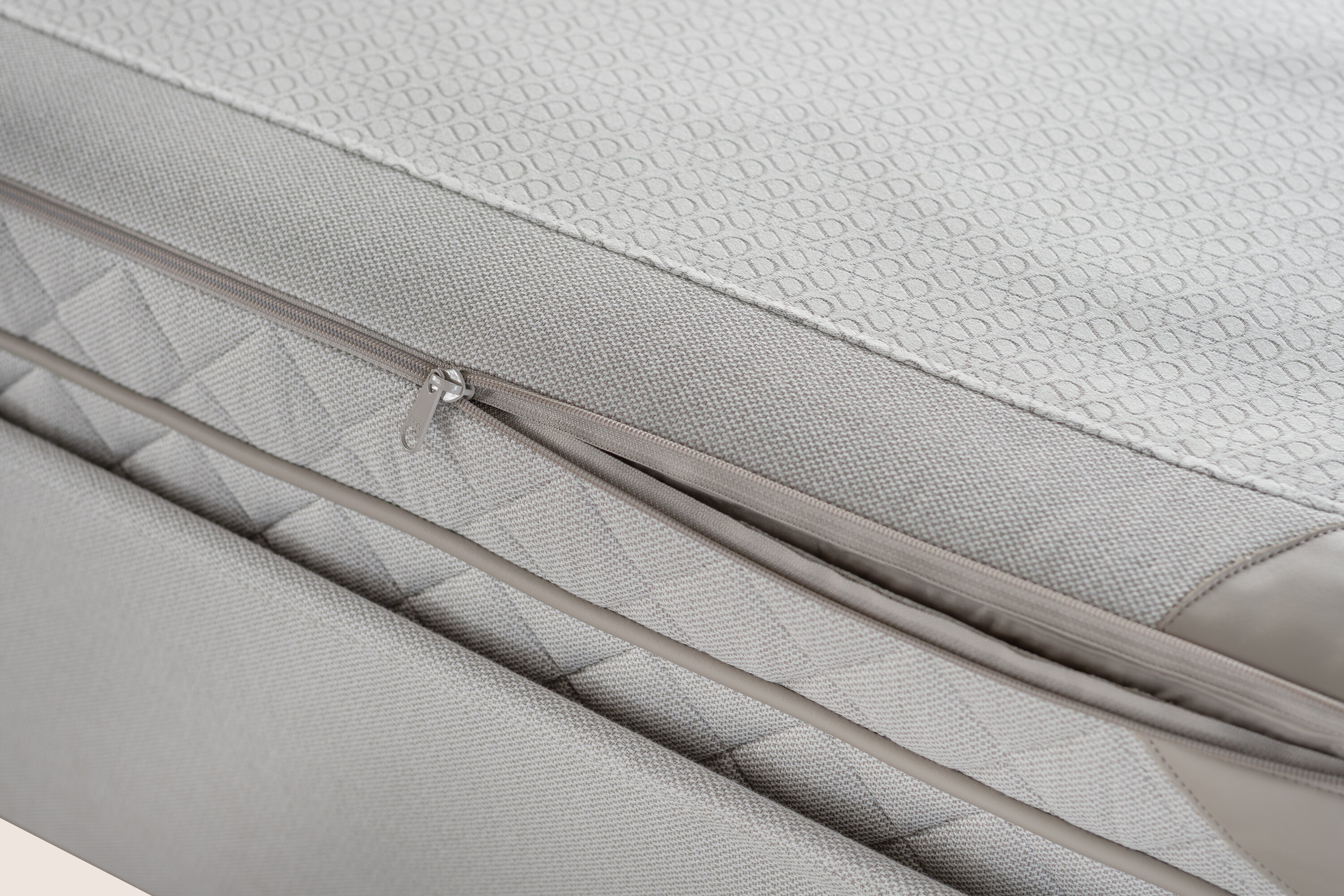 The top layer of The DUX Bed with Pascal can be unzipped to reveal six interchangeable spring cassettes; three for each side. You can arrange the cassettes based on your body size, shape and needs.