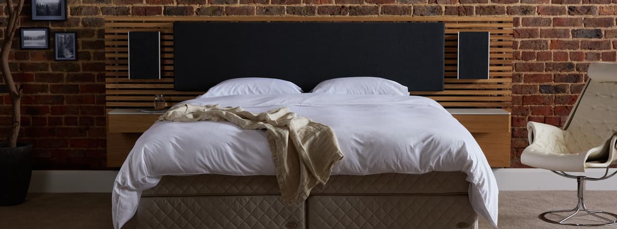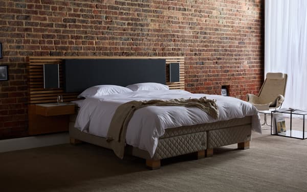 The Audio Headboard is the product of a collaboration between two esteemed Nordic brands. The meticulously handcrafted design is an unparalleled fusion of form and function that combines the audio excellence for which Bang and Olufsen is known with the elegant comfort of the DUX bed.