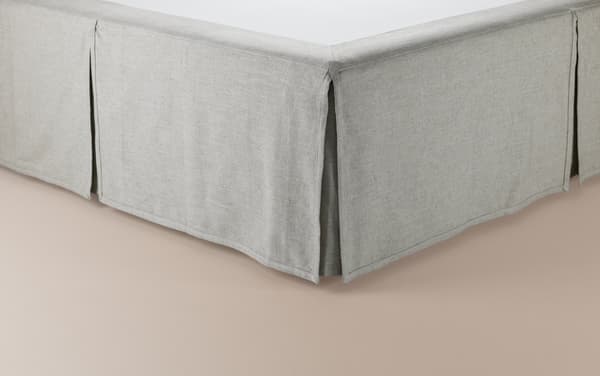 A handmade bed skirt, made in a DUX chosen quality fabric. Gives your bed a personalised look.