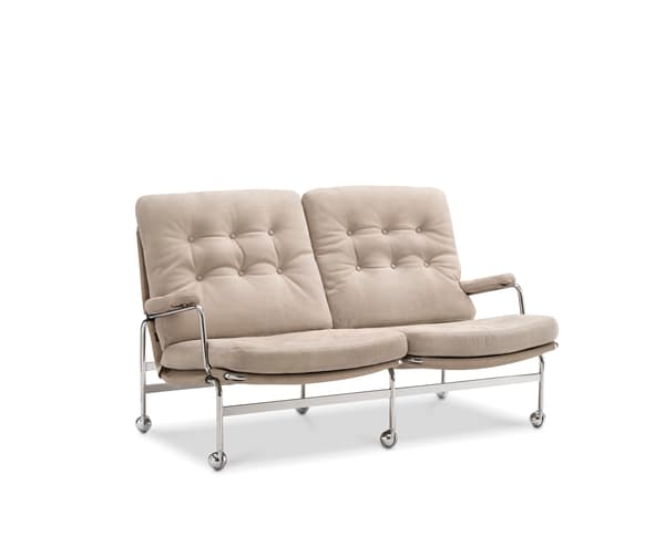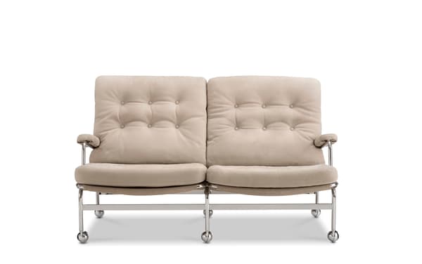 This elegant 2-seater sofa offers the perfect accompaniment to the original Karin armchair designed by Bruno Mathsson in 1969. It builds on the classic collection, with comfortable stuffed cushions that rest on a chrome-plated frame with supporting web. In addition to sofas and the original chair, the Karin range also features a stool and tables available in various sizes.