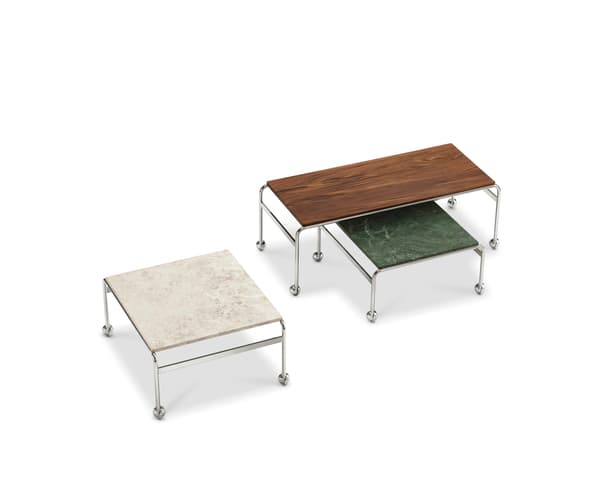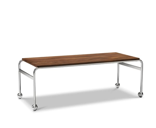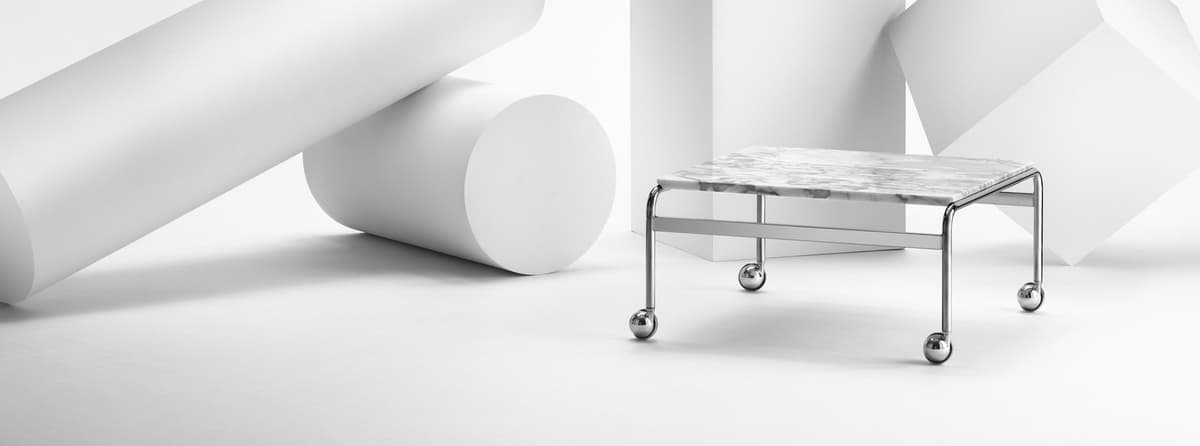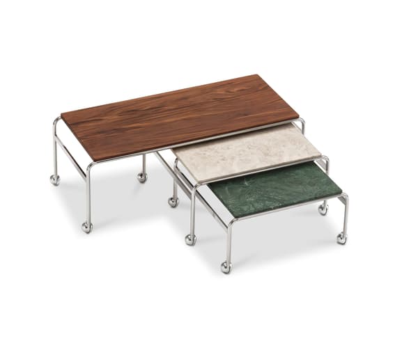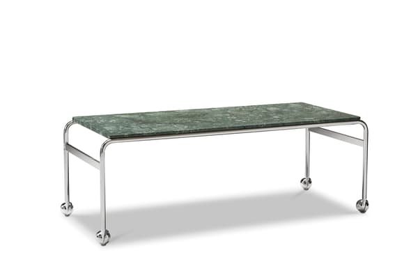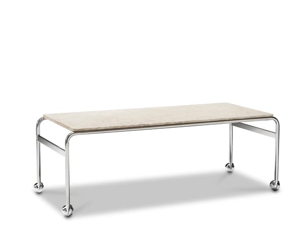 Based on Bruno Mathsson’s original table and designed to accompany his classic chair, this option provides the largest amount of surface space, but with the same elegant esthetics of the Karin collection. The chrome-plated frame is topped in exclusive marble, limestone or walnut.