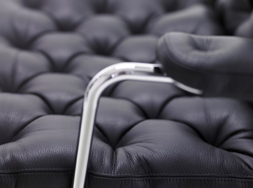 Karin 73 har en klassisk Bruno Mathsson-design och är en elegant fåtölj med en ram i fin krom och djuphäftad sits och rygg.