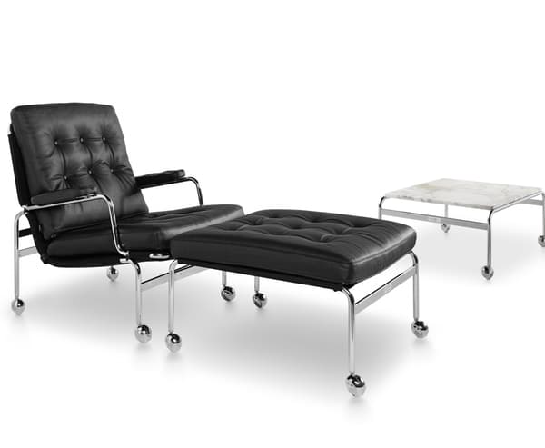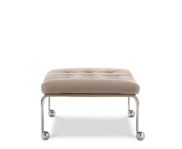 ブルーノ・マットソンが1969年にデザインしたクラシックなアームチェア「Karin」は、何十年にもわたって成功を収めた家具のコラボレーションの最初のアイテムとなりました。このエレガントなスツールは、コレクションに欠かせないアイテムです。サポートウェブが備えられたクロムメッキフレームに取り付けられた中材がしっかりと詰まったクッションが、「Karin」チェアの心地良い座り心地をさらに快適にします。