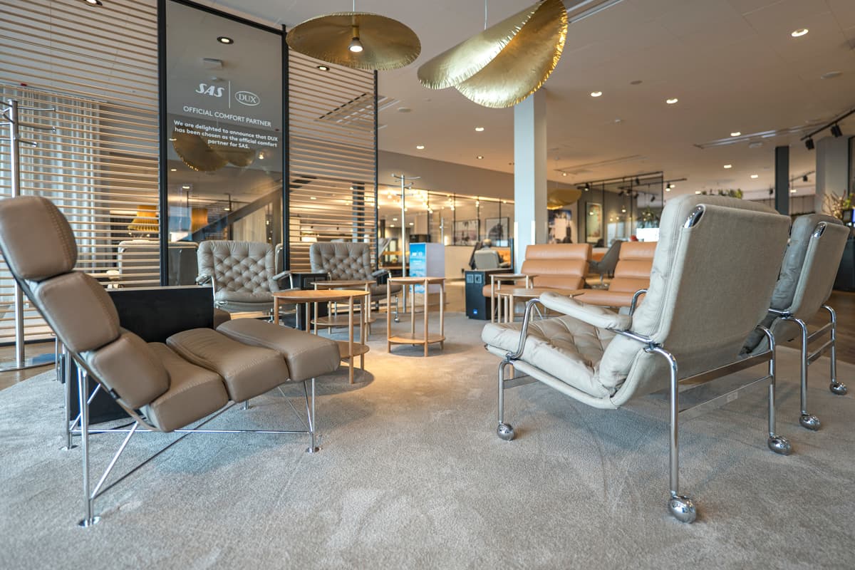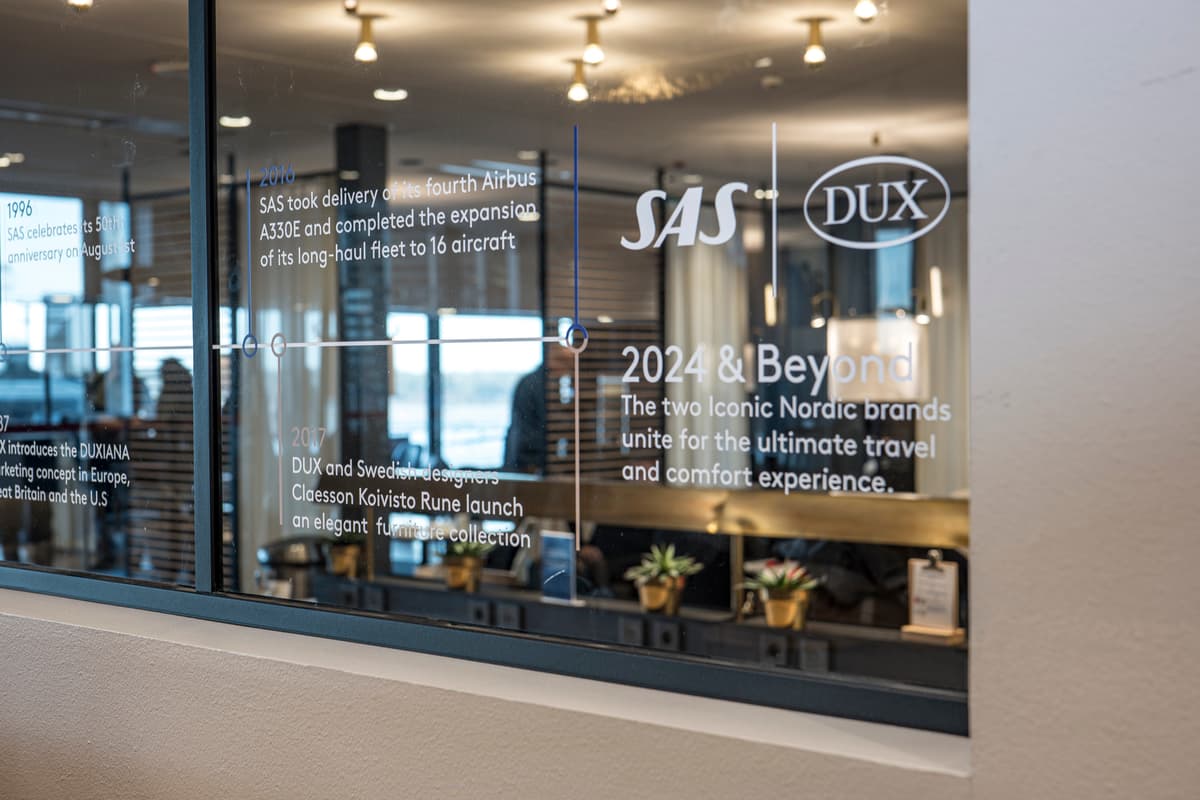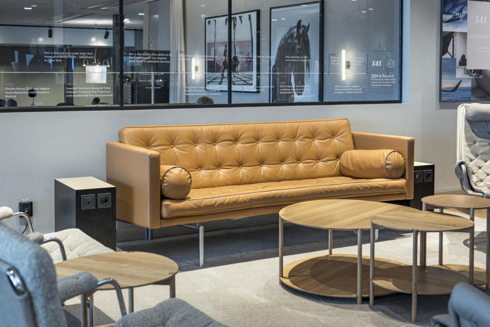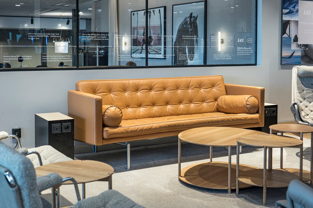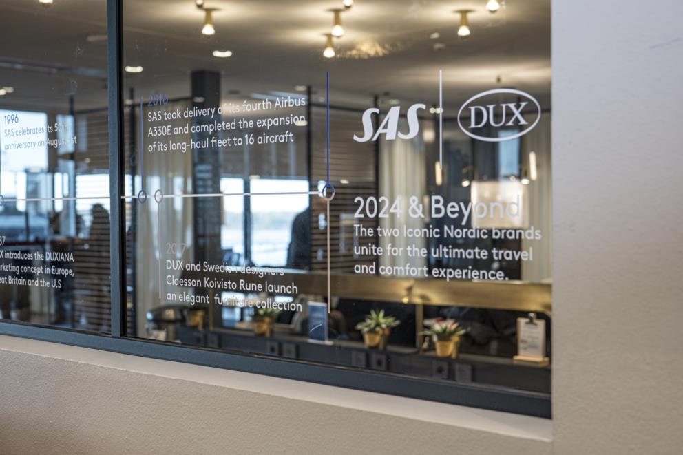 I september 1981 introducerade SAS Business Class, som kännetecknas av noggrann uppmärksamhet på detaljer – ett engagemang som kvarstår än idag. För närvarande förbättrar SAS upplevelsen ombord genom att erbjuda komfortpaket och samarbeta med välkända varumärken som DUX. Samarbetet sträcker sig till SAS Gold Business Lounges på Arlanda i Stockholm samt i Oslo och Köpenhamn där resenärer kan fördjupa sig i DUX handgjorda möbelprodukter och njuta av två sovrum i Köpenhamns lounge.