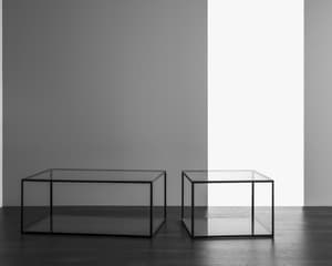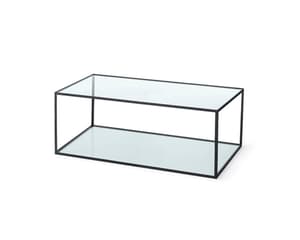 Ett klassiskt bord med rektangulär form i kromat eller svart utförande samt en bas- och bordsskiva av glas.