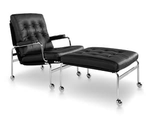 Karin 73 har fått sitt namn efter året den lanserades och var den första utvecklingen av den ursprungliga Karin-fåtöljen som designades av Bruno Mathsson. Denna eleganta fotpall är ett oumbärligt tillskott till kollektionen och erbjuder ökad komfort med stoppade plymåer som vilar på ett kromat stativ med bärande väv.