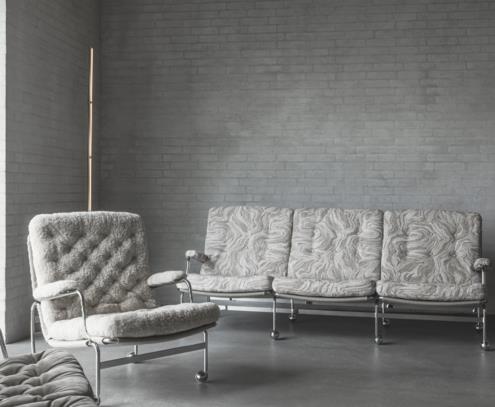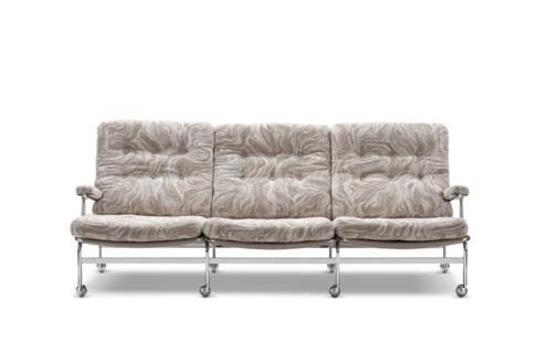 Karin 73 är en elegant 3-sitssoffa baserad på en klassisk design, med en fin ram i krom och djuphäftade plymåer.