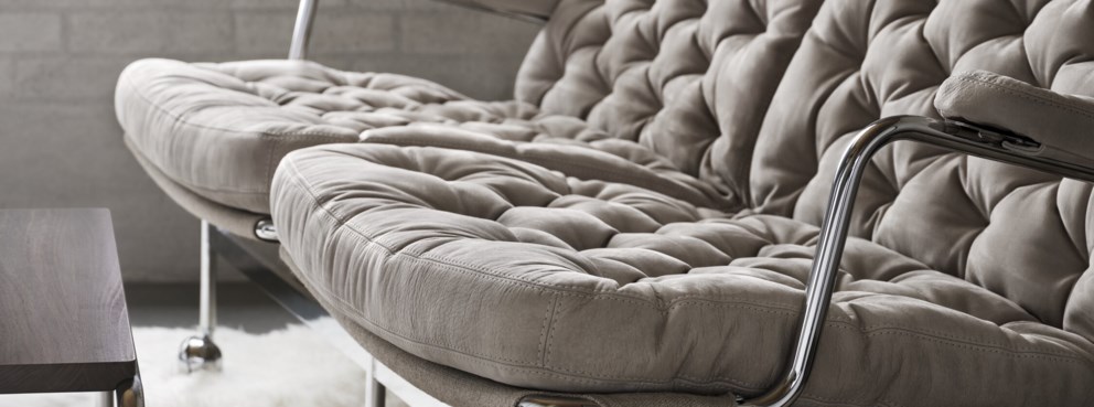 Karin 73 är en elegant 2-sitssoffa baserad på en klassisk design, med en fin ram i krom och djuphäftade plymåer.