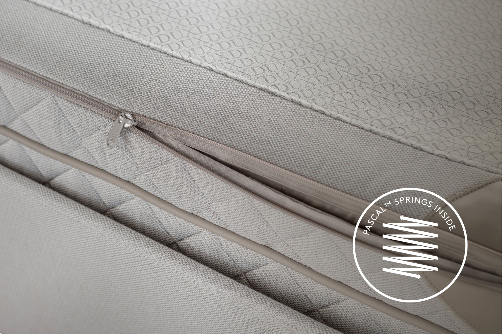Hos DUX-sängar med Pascal-system kan du öppna upp det översta lagret för att komma åt de sex utbytbara fjäderkassetterna, tre på varje sida. Du kan ordna kassetterna med utgångspunkt från kroppsform, vikt och behov.