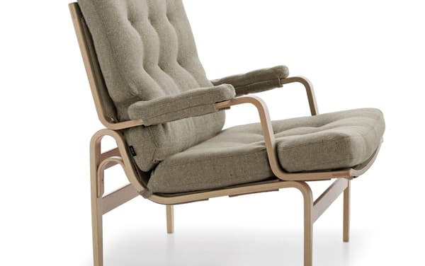 Bruno Mathsson 设计的经典休闲椅。Ingrid 是 Karin 的姐妹产品,但采用压制的山毛榉木。Ingrid 的座椅和靠背上都带按钮。